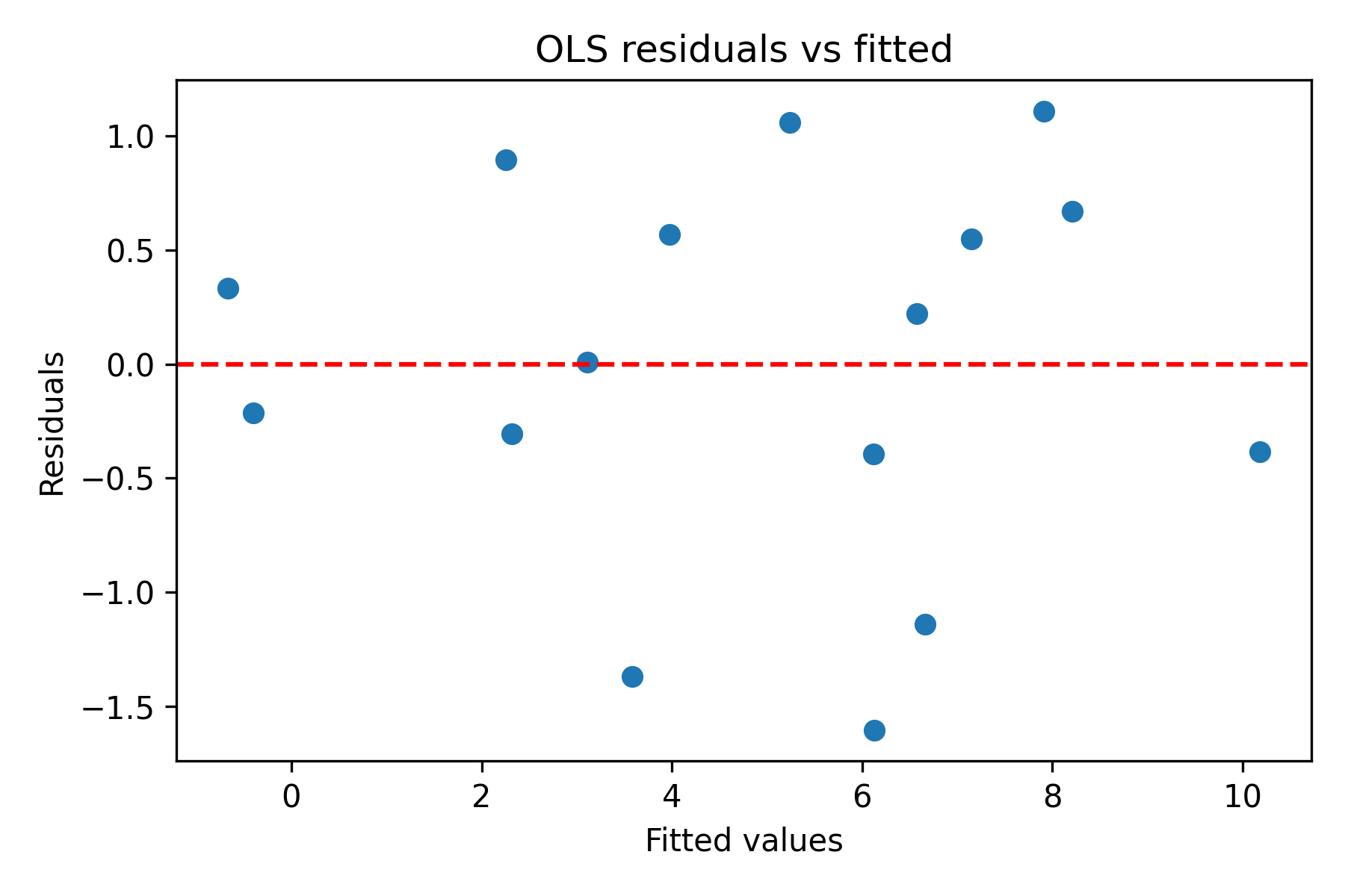 This suggests the basic regression assumptions are not badly violated, given the small sample.